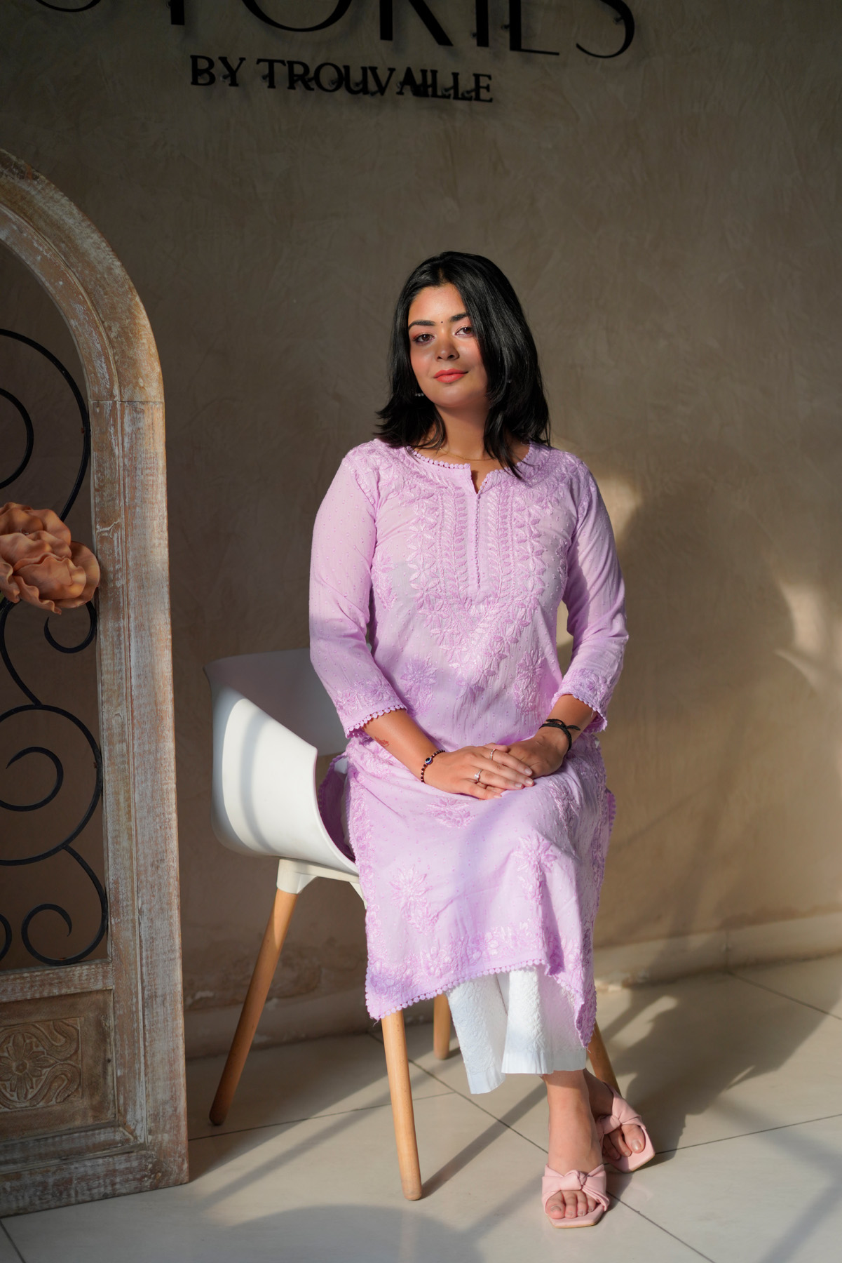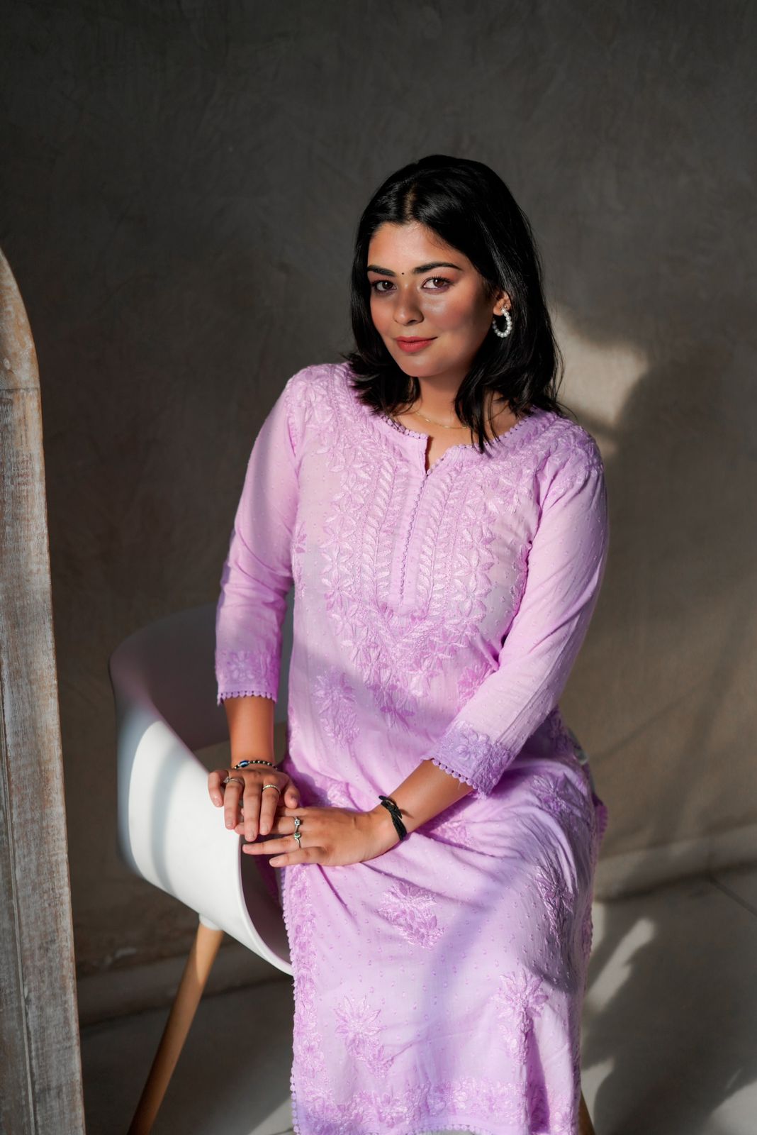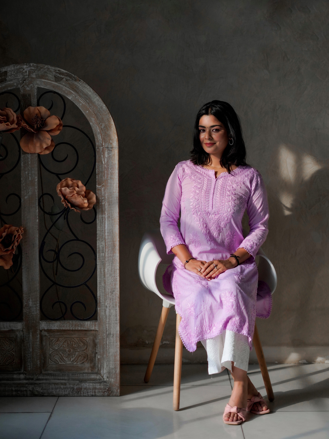 This is an Indian hand crafted kurties having traditional intricate details of thread work all done by hand to make the outfits and exclusive creation of hand embroidery.
